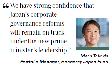 In October 2025, Sanae Takaichi was elected Japan’s new leader, becoming the country’s first female prime minister. We have strong confidence that the corporate governance reform trend will remain on track under her leadership. In addition, we believe the positive trends that have driven the Japanese market will continue including the normalization of interest rates, higher inflation, and growing inbound tourism.